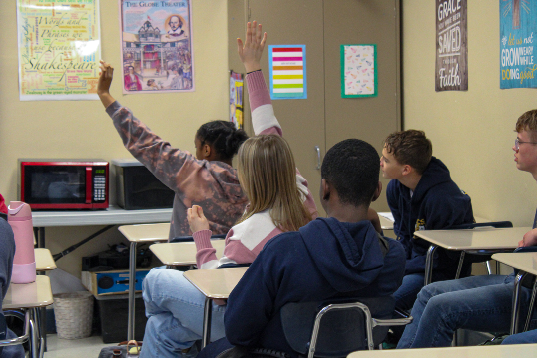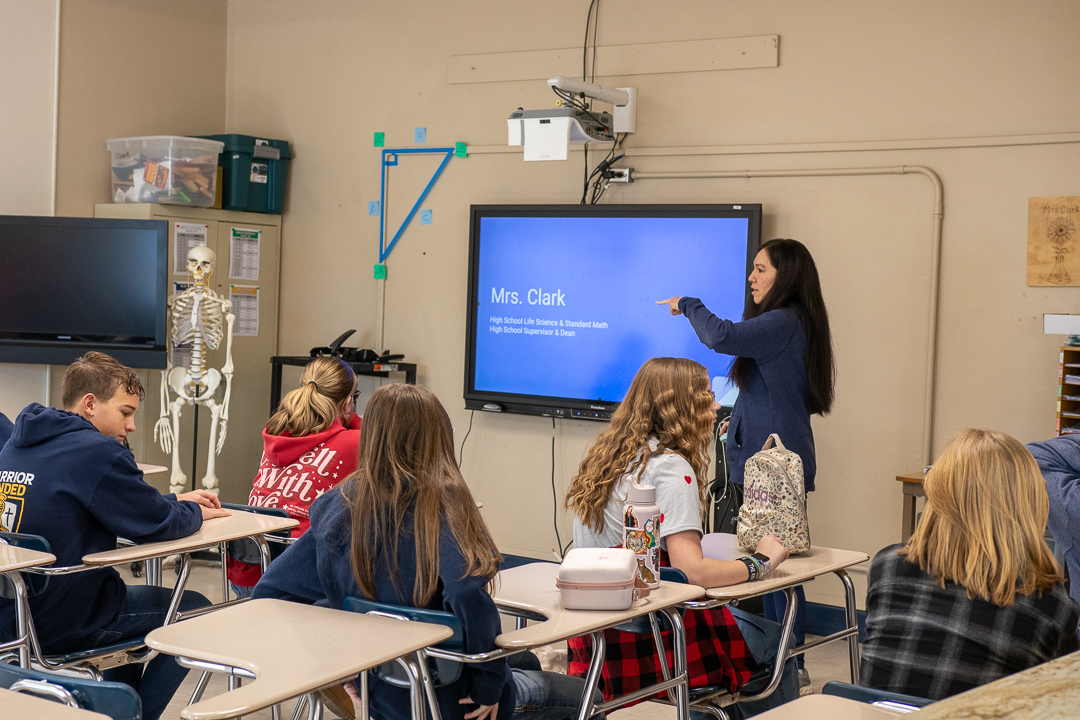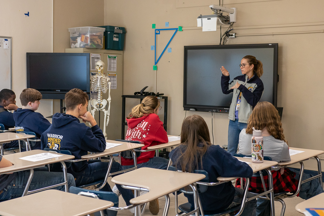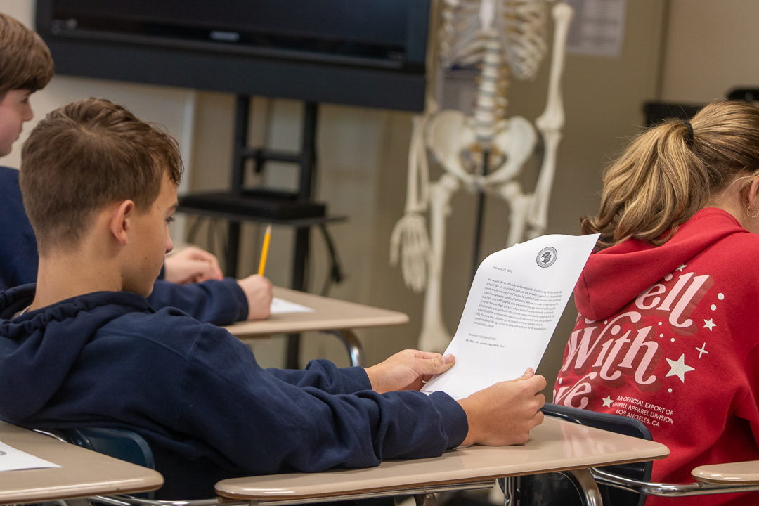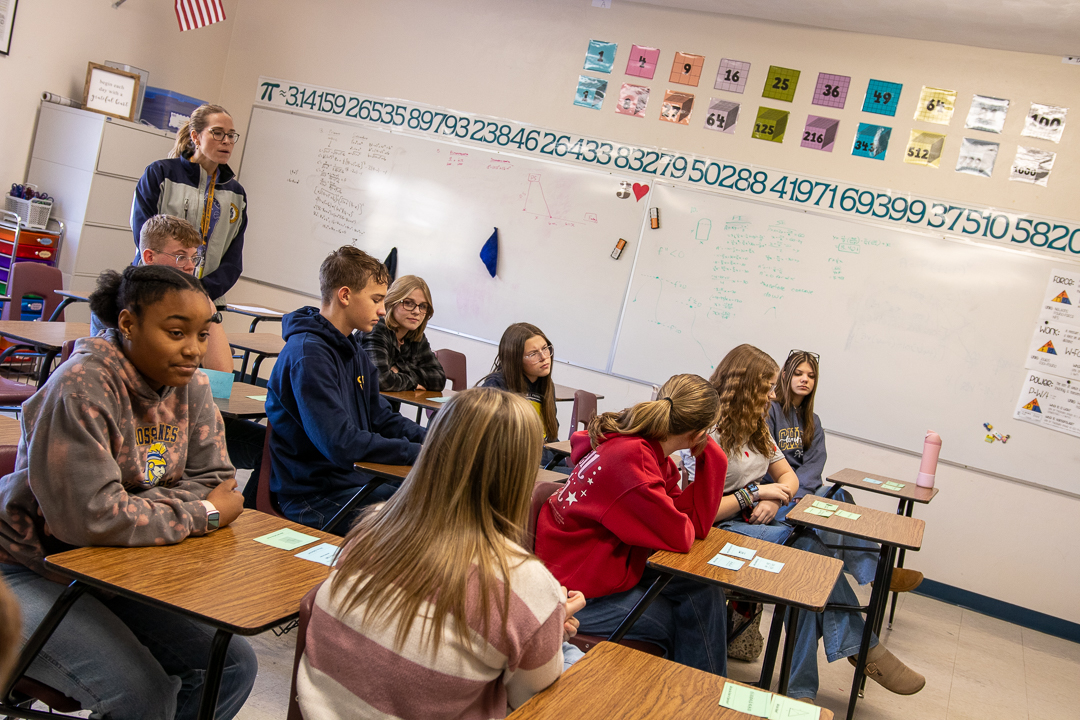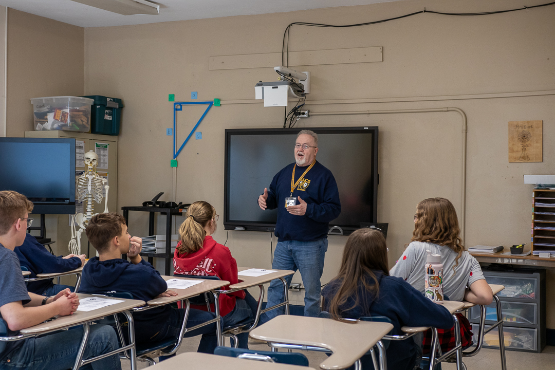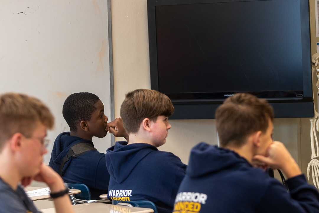 Our eighth graders had a little variation from their usual afternoon schedule recently when they walked the short distance from the Middle School Building to the High School Building to preview life as high school freshmen. The group had a short time with each teacher in what will be their core subject classrooms.