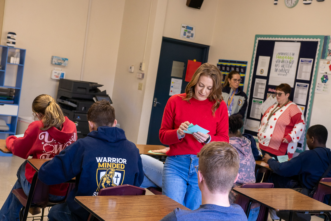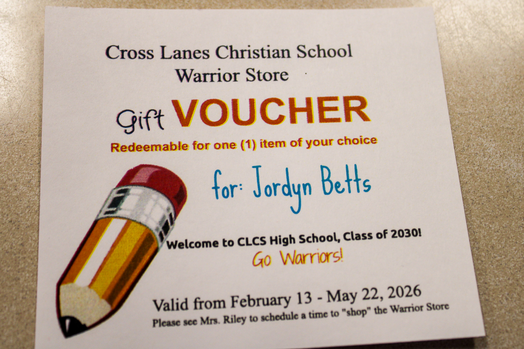 Mr. Riley, school administrator, presented each eighth grader with a voucher to the Warrior Store to purchase an item of their choice. Just before breaking for lunch, next year’s freshman class posed for the traditional portrait in front of the High School Building—where they will grow academically and spiritually and make memories their final four years on campus.