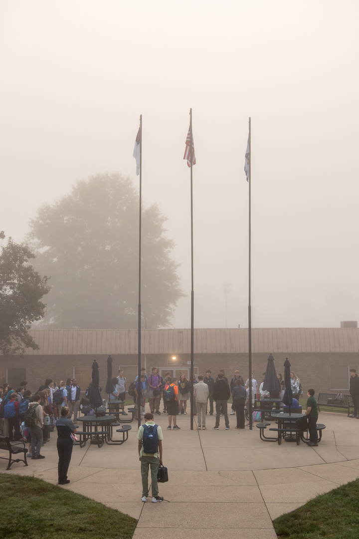 CLCS students who arrived before the school day began gathered with faculty and staff on a foggy fall morning to take part in the 2025 See You at the Pole event.